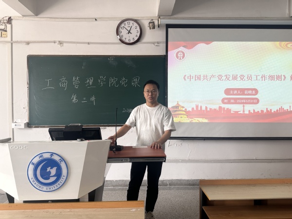 5月31日,工商管理学院党委党校在博学楼302教室开展第十二期入党积极分子培训班第三讲。工商管理学院兼职组织员葛晓龙主讲,全体学员参加。