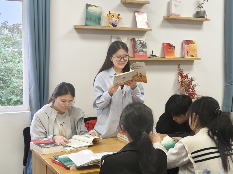 会上,各小组围绕推荐书目完成自主阅读和讨论后,9名同学交流感悟。23财管1班程华、25市营2班徐美萍同学结合《习近平与大学生朋友们》,分别从“实践积淀”和“乐观心态”出发,阐述青年成长路径;25会计2班朱宝利同学引用《习近平与大学生朋友们》中的名人名言,阐述“扣好人生每一粒扣子”的深刻意义。24市营2班王志强、25市营1班汪佳宁、陈洁琪和张士旭同学聚焦《习近平用典》(第一辑),提出青年需锚定方向,以实践为帆,方能驶向梦想的彼岸。23财管1班沈婧怡、24会计1班范心茹同学结合《记工商学子在基层》系列中学长学姐的成长经历,表示青年应明确发展方向,追寻热爱梦想。