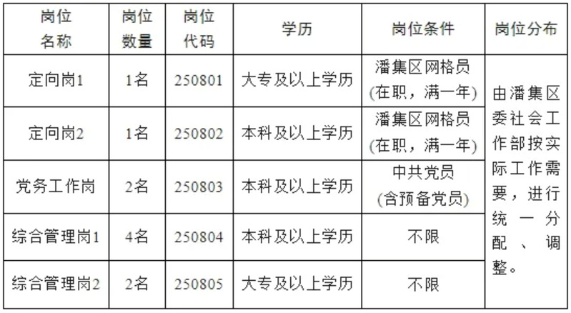 本次共计划招聘社区“两委”后备干部10名,其中面向网格员定向招聘社区“两委”后备干部2名。