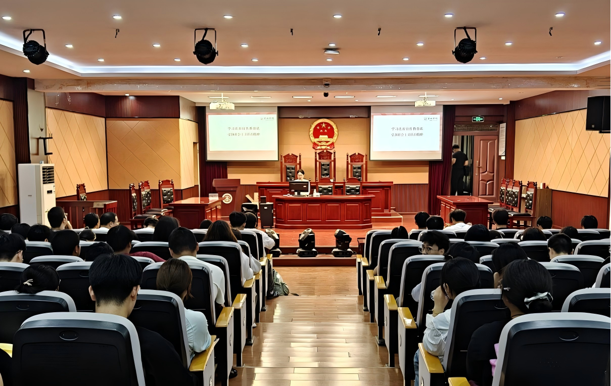 由校法治办主办,校团委协办,经济与法学学院承办,经济与法学学院张颂昀老师主讲的“学习《中华人民共和国法治宣传教育法》,弘扬社会主义法治精神”主题讲座活动于2025年9月26日在模拟法庭正式拉开帷幕,全校共120名师生满怀热情参与本次主题讲座。本次讲座旨在强化师生法治意识,推动校园法治文化建设,保护师生群体的合法权益。