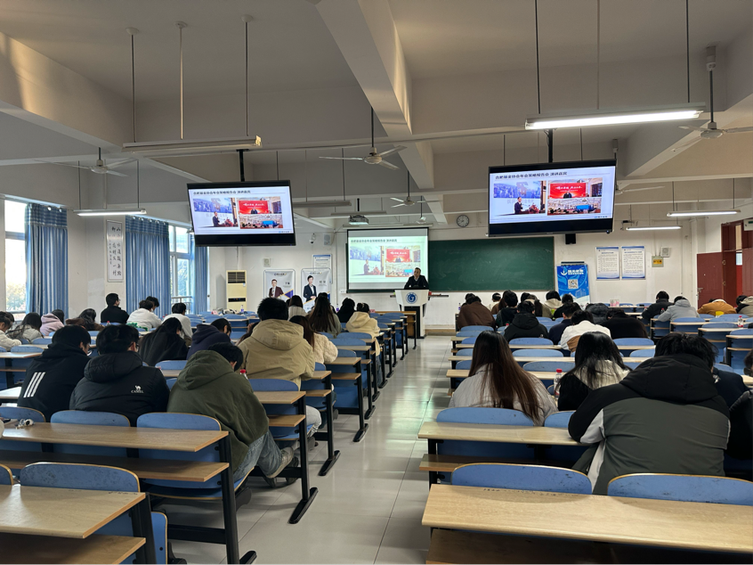 为全面提升金融系在校学生的专业素养和实践能力,2025年11月19日下午在慎思楼中201开展新一期“与时代同行·让财智起航”投资者教育进校园活动暨求实经济大讲堂。国元证券巢湖营业部副总经理赵翔、总部投教中心主任李红、研究中心宏观研究员兼首席投资顾问郑旻、首席投资顾问丁猛等一行出席,与200余名师生共话资本市场前沿动态。讲座由经法学院党委书记徐兆武主持。