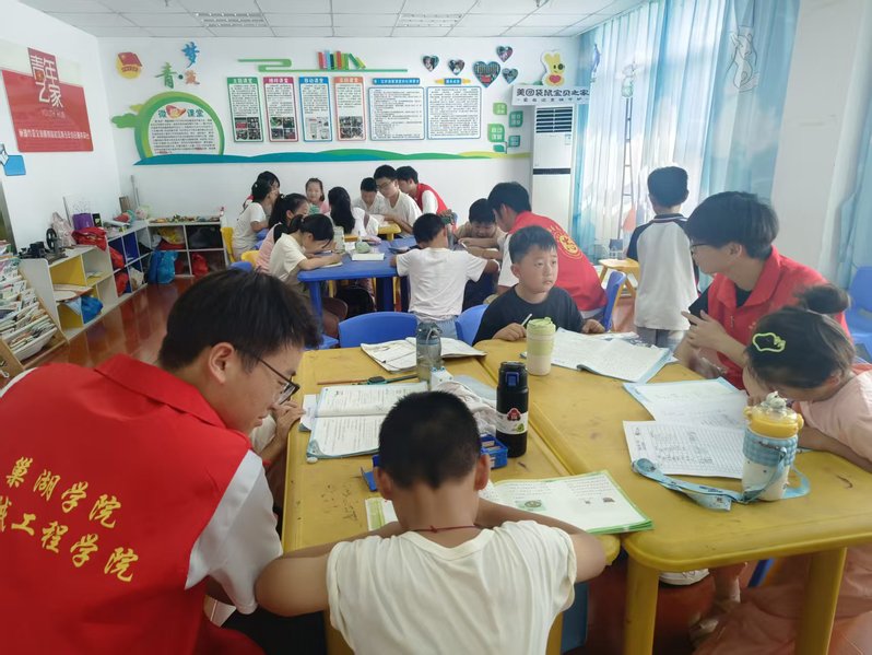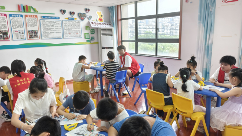 七月初,巢湖气温达39℃,闷热难耐,岗岭社区服务中心教室却满是欢声笑语。2025年7月3日至26日,巢湖学院机械工程学院“青志愿”教育关爱团11名成员,在李久昊老师带领下,在此开展留守儿童知识科普实践活动。