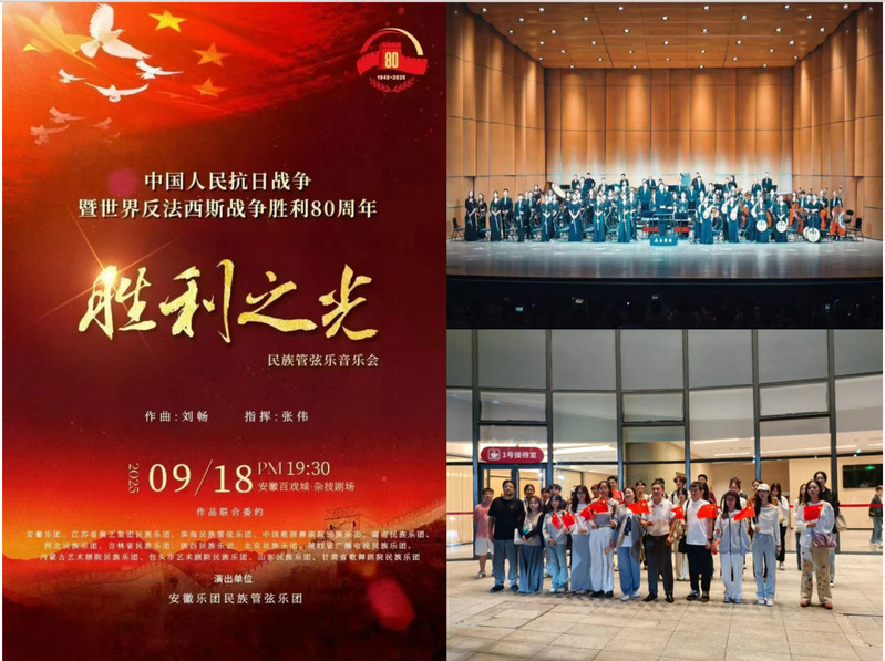 为纪念中国人民抗日战争暨世界反法西斯战争胜利80周年,在“九一八”事变纪念日这个庄严时刻,教师教育学院党委组织师生党员及音乐表演专业学生代表,前往安徽百戏城·杂技剧场观看安徽民族管弦交响乐团演出的《胜利之光》民族管弦乐音乐会,将党性教育、专业实践与思政育人有机融合,构建“艺术观摩+思政教育+专业学习”协同育人新模式。