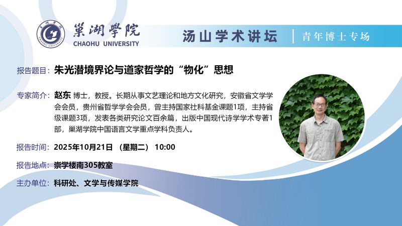 汤山学术讲坛青年博士专场第23讲:(10月21日:文学与传媒学院赵东博士讲座)
