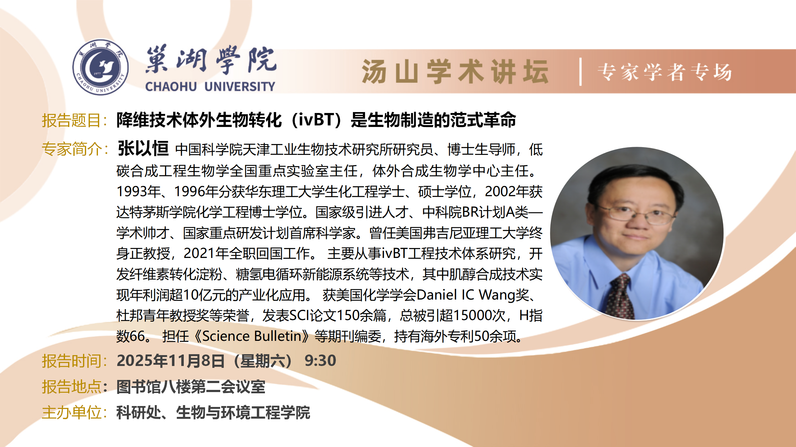 11月8日:中国科学院天津工业生物技术研究所张以恒研究员讲座