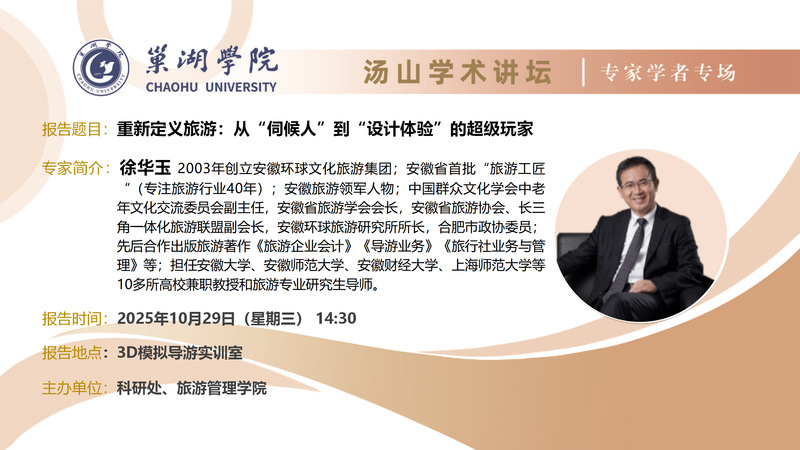 10月29日:安徽省旅游学会会长徐华玉教授讲座