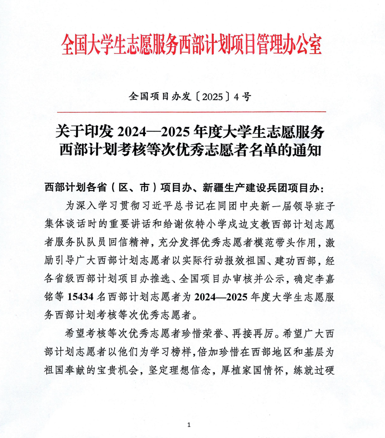 近日,全国大学生志愿服务西部计划项目管理办公室正式下发《关于印发2024...