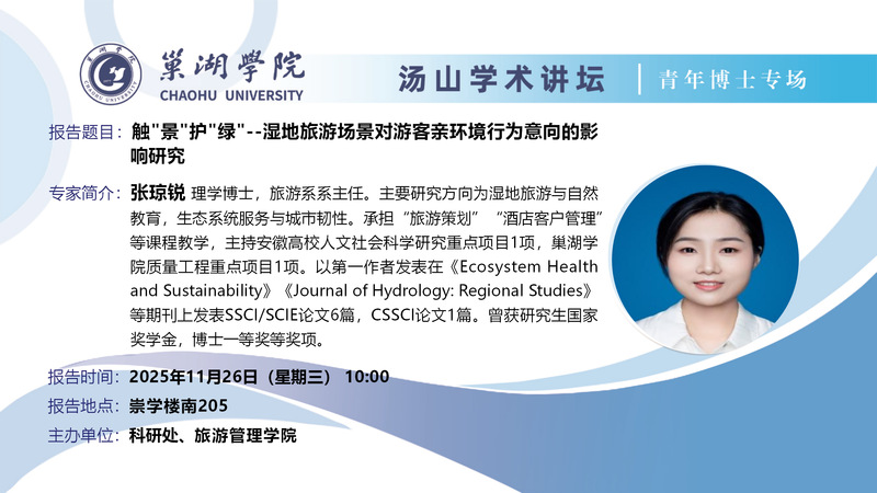 汤山学术讲坛青年博士专场第28讲:(11月26日:旅游管理学院张琼锐博士讲座)