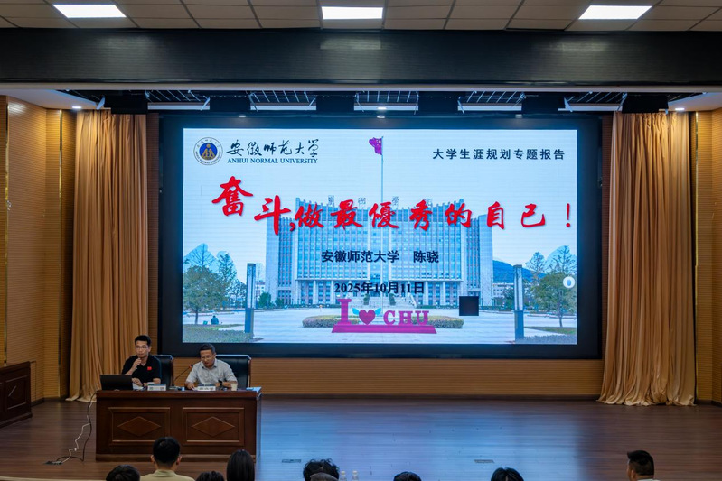 2025年10月11日,生物与环境工程学院特邀安徽师范大学团委书记陈骁为全体新生作题为《奋斗,做最优秀的自己》主题报告。报告会由院长陈小举主持。