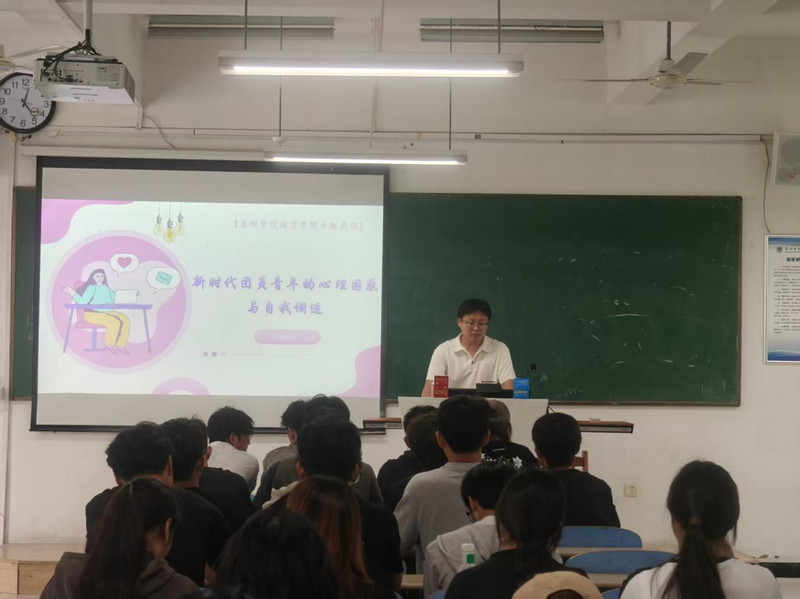 10月17日,体育学院团委临时负责人、挂职副书记田中正在慎思楼北101教室讲授“团员青年的心理困惑与自我调适”第五期青马工程培训第五讲,体育学院第五期青马班全体学员、团员代表、学院学生组织成员参加培训。