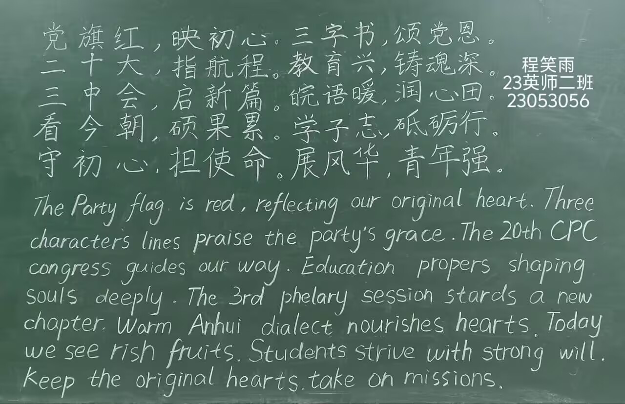 为进一步提升师范类专业学生综合素质,提高外国语学院学生双语书写能力,营造以赛促学氛围,外国语学院于11月上旬顺利举办“师范技能强基础 三字书写展实力”第三届师范生“三字”书写大赛。
