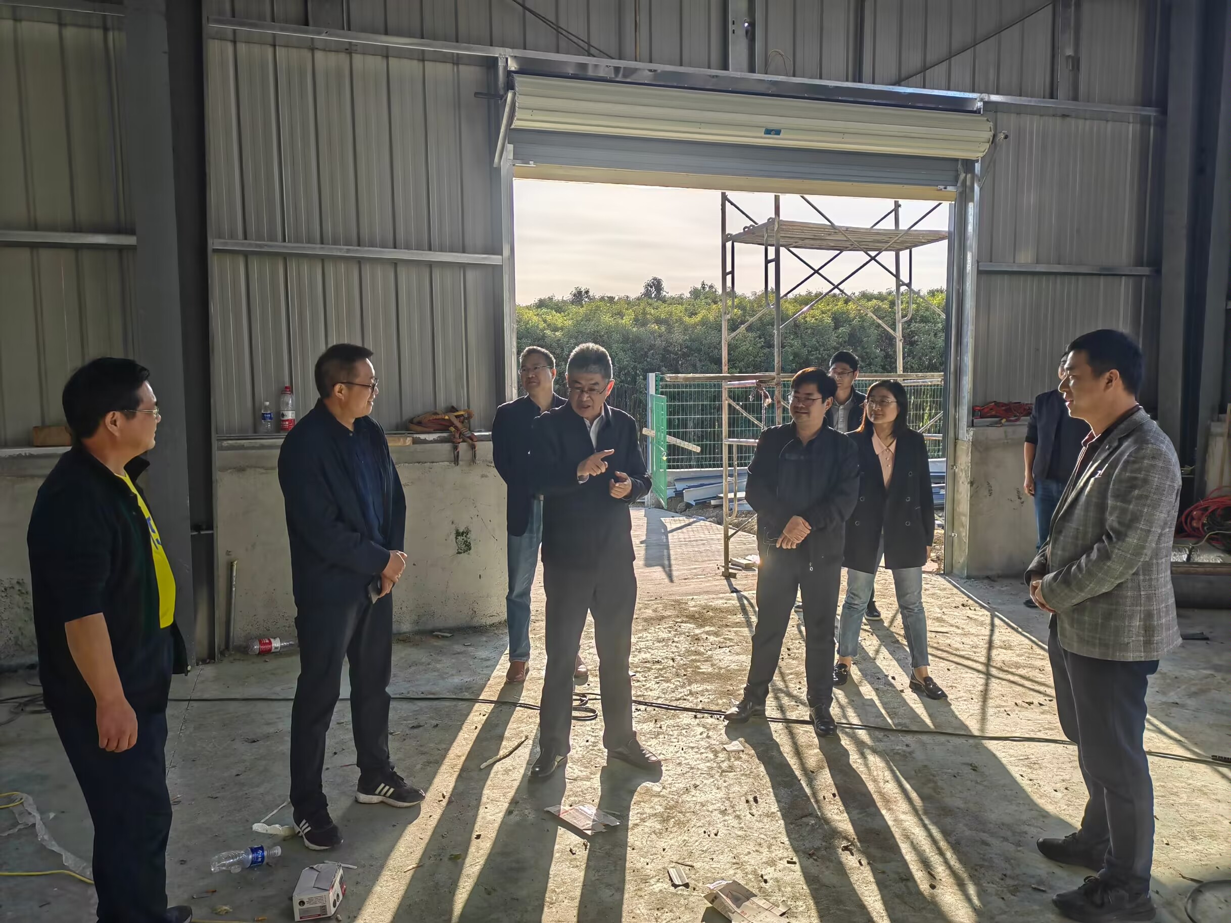 调研中,阮爱民一行实地考察童坛村粮油加工农事服务中心,了解项目进展情况。