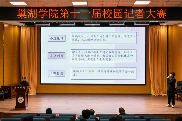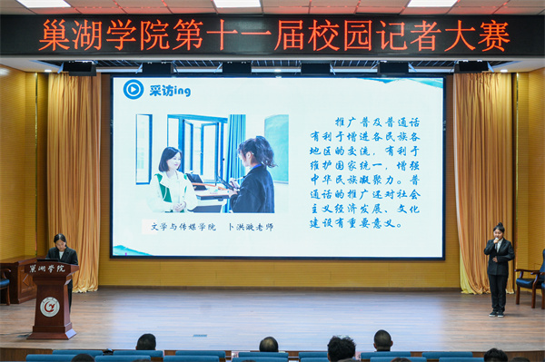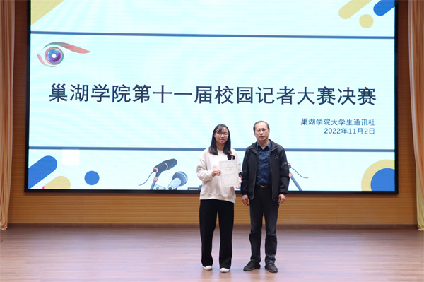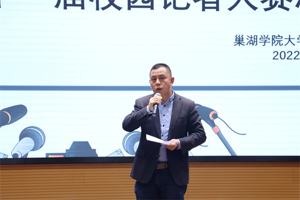 11月2日晚,巢湖学院第十一届校园记者大赛决赛在求实楼报告厅举行。校党委委员、宣传(统战)部长张连福参加活动。《新安晚报》巢湖记者站站长金学永,《巢湖晨刊》资深记者宋阳东,校纪检员刘洪涛,校党委宣传部副部长郭超、党委学生工作部副部长丁继勇担任比赛评委。