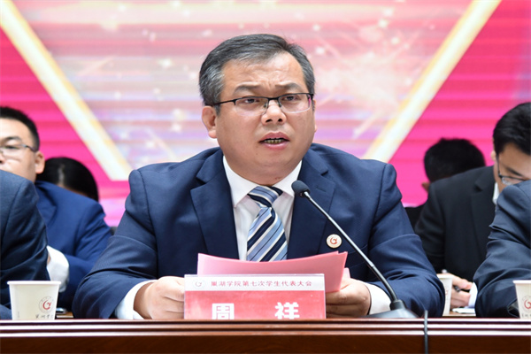 开幕式上,周祥代表学校党委讲话时指出,一年来,校学生会坚持以习近平新时代中国特色社会主义思想指导,深入学习贯彻十九届六中全会、党的二十大精神,在校党委和省学联的坚强领导下,在校团委的精心指导下,不断深化改革、从严治会,团结带领全体同学,围绕学校中心工作,促进教育教学,加强校风学风,丰富校园文化,维护学生权益,切实提升了同学满意度、大局贡献度和社会认可度。在政治引领、疫情防控、乡村振兴等工作中,以实际行动证明我校学生会组织是坚强有力的、工作是富有成效的、青年学生是担当作为的。周祥就学生会如何在工作中提高学生活动实效性、针对性,发挥学生干部表率作用,发扬主人翁精神,关心国家和学校发展建设,提出三点希望与要求:一要坚定理想信念,树立远大志向。坚持用习近平新时代中国特色社会主义思想和党的二十大精神武装头脑,增强历史主动,厚植爱国情怀,用一生来践行听党话、跟党走的理想追求,把爱国情、强国志、报国行自觉融入中国特色社会主义新时代的发展格局,把坚定拥护“两个确立”、坚决做到“两个维护”化为思想自觉和行动自觉;二要勤奋学习实践,练就过硬本领。倍加珍惜宝贵的青春年华,抓住黄金时期,心无旁骛地学习知识技能,积极主动地投身社会实践和创新创业,立志做有理想、敢担当、能吃苦、肯奋斗的新时代好青年,努力践行“请党放心,强国有我”的青春誓言,早日成长为堪当民族复兴重任的时代新人;三要牢记服务宗旨,锤炼品德作风。加强自身作风建设,牢记“全心全意为同学服务”的宗旨,当好桥梁和纽带,在学业发展、身心健康、社会融入、权益维护等领域认真倾听同学心声,深入了解同学诉求,积极回应同学关切,展现信念坚定、心系同学、品学兼优、朝气蓬勃的学生骨干风貌,塑造清新阳光的学生会组织形象,团结带领同学们增强主人翁意识,积极参与到学校民主管理中来,充分发挥广大同学在完善学校治理体系中的作用。