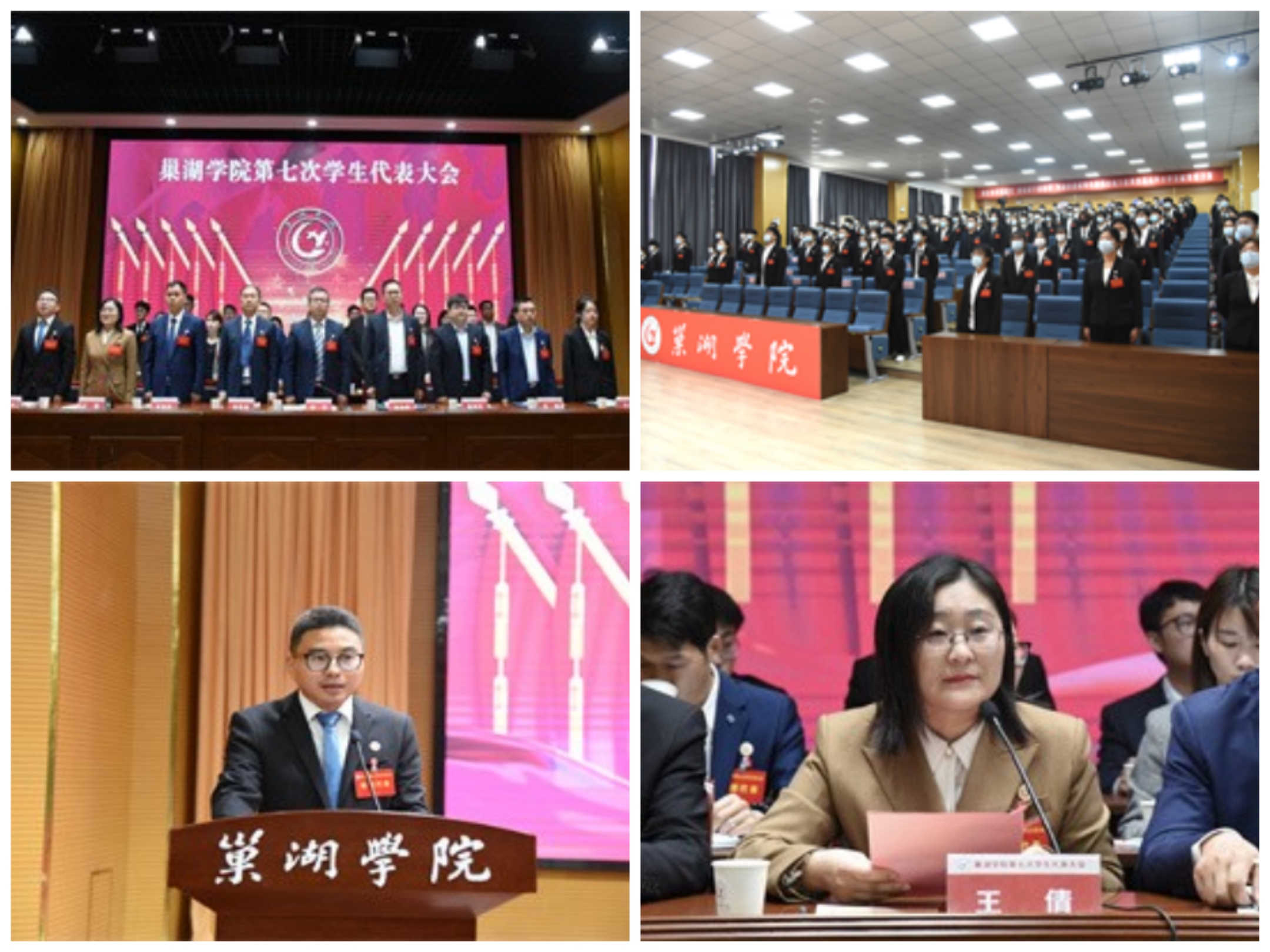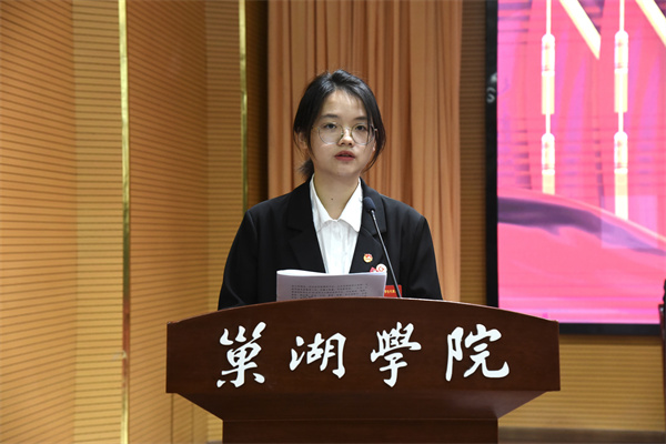 下午4:30,巢湖学院第七次学生代表大会闭幕式在求实楼报告厅举行。审议通过了关于《巢湖学院第六届学生委员会工作报告》的决议、关于修改《巢湖学院学生会章程》的决议,选举产生了巢湖学院第七届学生委员会委员和主席团成员。