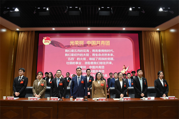 王倩宣布巢湖学院第七次学生代表大会胜利闭幕!全体成员起立奏唱《光荣啊,中国共青团》。