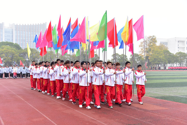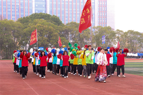 彩旗方队紧随其后,踏着青春的步伐,伴着激扬的旋律,活力无限、大放光彩,表达了对本届运动会的美好祝愿。