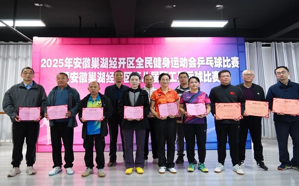 2025年11月8日至9日,安徽巢湖经开区全民健身运动会乒乓球比赛暨区第八届职工乒乓球比赛在区老年大学乒乓球馆举行。本次比赛由安巢经开区总工会、区社会发展局联合主办,设团体赛与个人赛两大组别,吸引了全区机关、企事业单位及社区的11支代表队、50余名运动员齐聚赛场、同台竞技。巢湖学院工会组织教职工共13名队员参赛,党委委员、副校长周祥全程参加了比赛。
