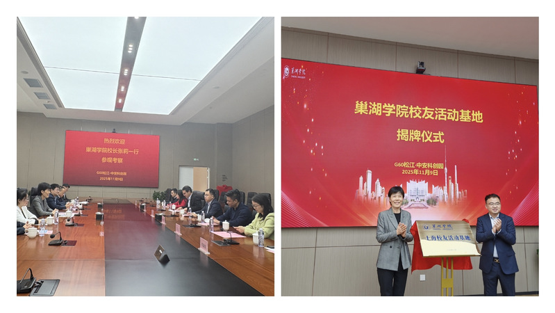 汤山弦歌未远,浦江潮涌新章。11月9日,巢湖学院上海校友联络处成立暨授牌仪式在上海市G60松江·中安科创园圆满举行。巢湖学院党委副书记、校长张莉,共青团安徽省委驻沪团工委书记、G60松江·中安科创园董事长高源,校友办和部分二级学院负责人、在沪校友代表及学校地方校友组织代表等共聚一堂,共同见证这一凝聚情谊、汇聚力量的喜庆时刻。
