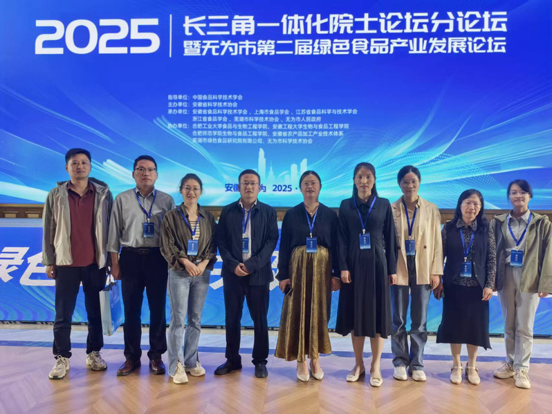 9月25日-26日,2025年长三角一体化院士论坛分论坛暨无为市第二届绿色食品产业发展论坛在无为市成功举办。本次论坛由中国食品科学技术学会指导,安徽省科学技术协会主办,安徽省食品科学技术学会、江苏省食品科学与技术学会、浙江省食品学会、上海市食品学会、芜湖市科学技术协会、无为市人民政府共同承办。来自全国各地的专家学者与绿色食品企业代表齐聚一堂,共同探讨中国绿色食品产业的高质量发展路径。安徽省环巢湖乡村振兴协同技术服务中心(培育)(以下简称“中心”)主任陈小举及相关研究人员一行9人参与了本次论坛。