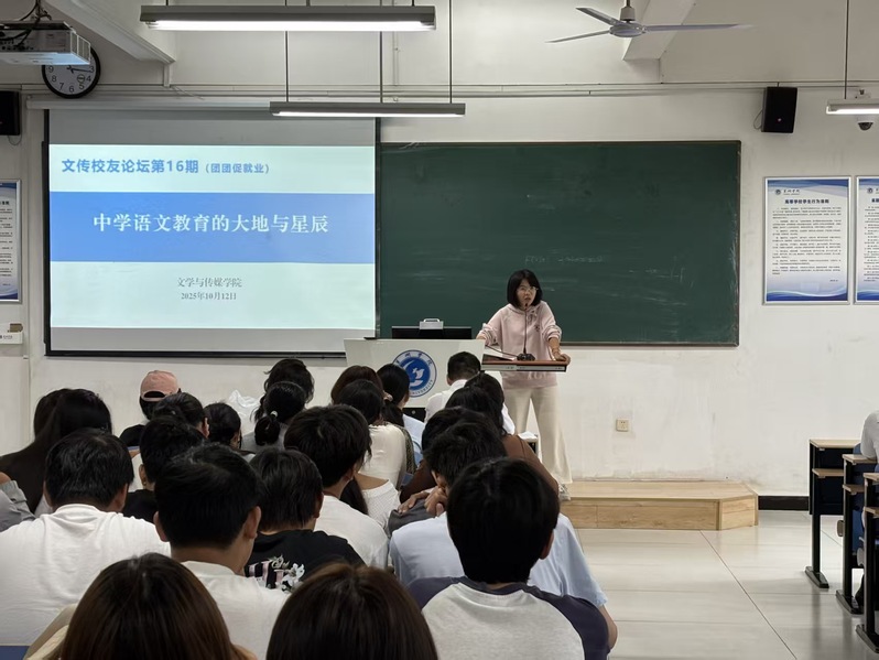 为进一步凝聚校友力量,帮助学生做好学业与职业生涯规划,10月12日上午,文学与传媒学院在慎思楼北102举办第16期校友论坛。论坛邀请到2013级汉语言文学专业校友许玉娥,以“中学语文教育的大地与星辰”为题,重返母校与2024级、2025级汉语言专业学生进行交流。论坛由学院副院长陈先涛主持。