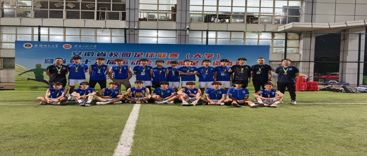 2025年安徽省校园足球联赛(大学)男子丙组比赛于10月12日在芜湖市举行,本次比赛由安徽省教育厅、安徽省体育局主办,安徽师范大学承办。我校委派体育学院陈小舟老师为领队,张梓正、王归然为教练的校男子足球队参加了省运会足球男子丙组比赛。
