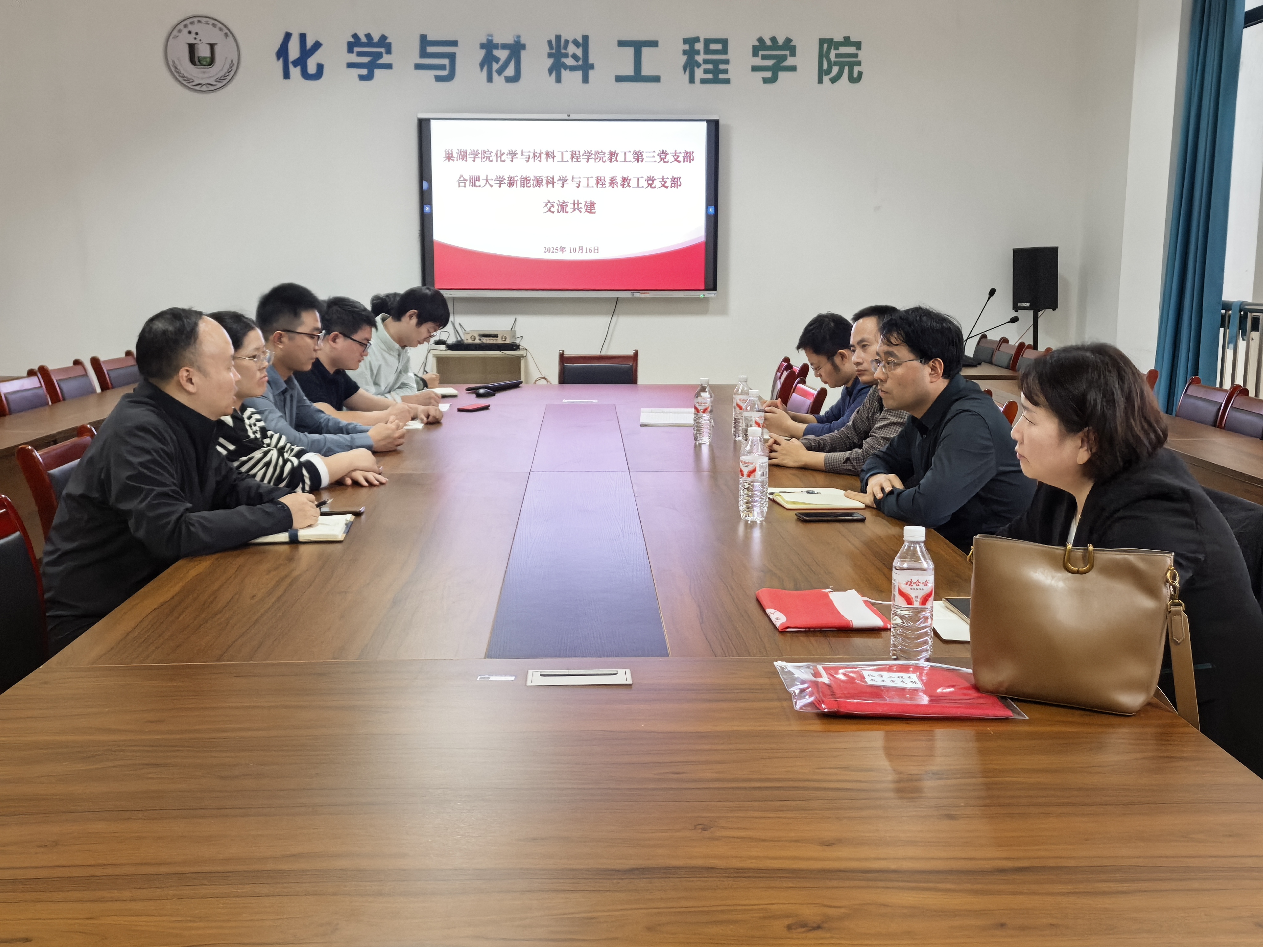 为深入贯彻新时代党的建设总要求,创新基层党建工作载体,10月16日,化学与材料工程学院教工第三党支部与合肥大学新能源科学与工程系教工党支部开展结对共建交流活动。本次活动聚焦党建与业务深度融合,围绕专业建设与人才培养,着力推动双方在多个领域开展务实合作。合肥大学能源材料与化工学院院长、院党委副书记杨伟,院党委委员、副院长、新能源科学与工程系党支部书记胡恩柱及支部党员教师代表参加活动。会议由巢湖学院化学与材料工程学院党委委员、副院长、教工第三党支部书记李川主持。