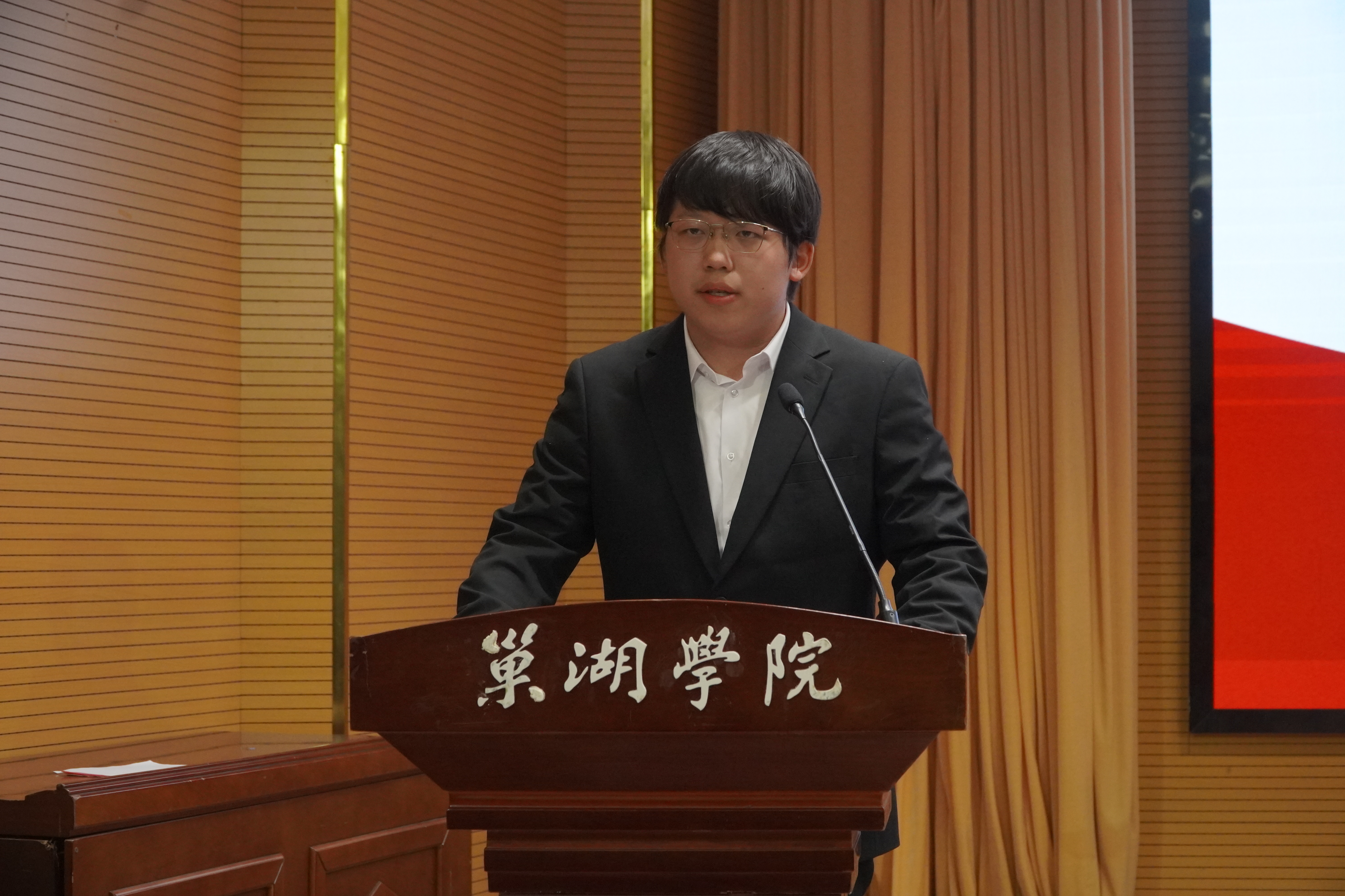 巢湖学院学生会主席团成员提名候选人预备人选吴俊喆作为留任学生组织工作人员代表发言。他回顾了在校学生会两年来的成长历程,表示在服务同学和团队协作中培养了责任意识、收获了珍贵友谊。面对留任选择,他引用“用制度约束人,用感情留住人”的组织传承,表达了继续服务的决心。展望未来,他表示要进一步筑牢思想根基,深化服务内涵,加强自身建设,恪守“宁做学生友,不做学生官”的作风,团结全体成员为学校发展和同学成长贡献青春力量。