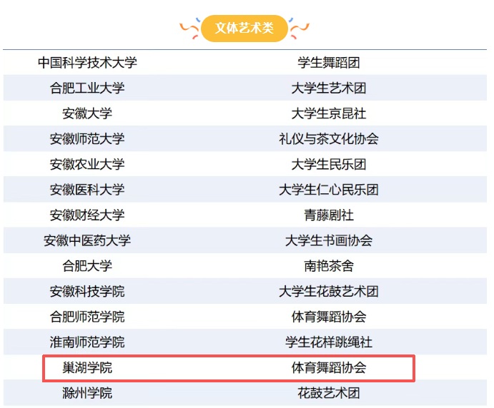 近日,由共青团安徽省委、安徽省学生联合会主办的2024-2025学年安徽省高校“联通杯·活力社团”风采展示活动圆满落幕。由体育学院指导的体育舞蹈协会凭借扎实的专业实力及丰富的育人成果,从全省百余个参评社团中脱颖而出,成功入选文体艺术类“活力社团”榜单,成为校园文化建设的璀璨亮点。