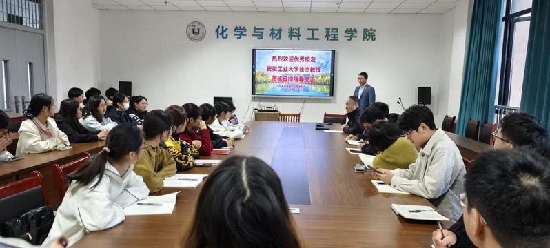 10月22日上午,化学与材料工程学院邀请优秀校友、安徽工业大学资格教授徐杰,在学院会议室作题为“功能有机框架材料在电化学能源中的机制研究” 的学术报告。报告会由学院副院长李川主持,学院相关专业的教师及部分学生共同参会。
