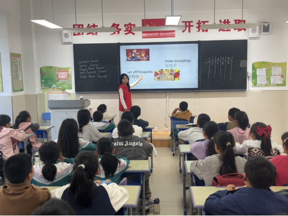 本次授课的主题为中国传统节日和榜样的力量。课堂上,志愿者们使用生动的例子引入本次课程主题,以生动有趣的形式进行讲解,让同学们在活跃的氛围中轻松学习,增强英语课堂学习的趣味性,提高了课堂参与程度。志愿者们设计了丰富的小组活动和游戏环节,小朋友们积极举手回答问题,营造了轻松快乐的课堂氛围。志愿者们为积极参与的同学们发放小红花和小奖品,鼓励更多同学们参与进来,大家都沉浸在欢快的学习氛围中,在游戏性活动和深度交流中加深了同学们对中国传统节日和榜样力量的理解。