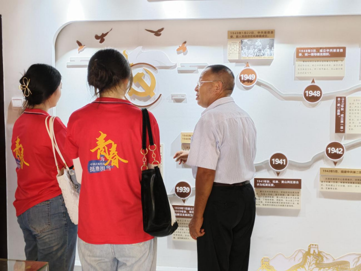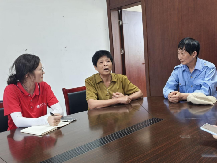 实践团队与庙岗镇老年大学杨老师展开了深入交流。他介绍,为让红色故事更好地融入老年教育,学校创新推出“红色课堂+多元实践”模式。在课堂教学中,除了传统的讲述,还采用情景再现、老照片解读、红色歌曲教唱等形式,让老人们更直观地感受红色文化的魅力。