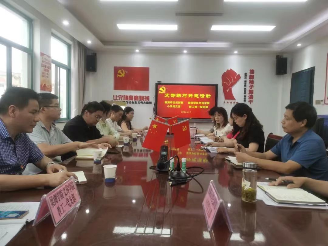 为了充分发挥党建引领作用,实现优势互补、资源共享、双向促进、共同提高的目标,6月5日,文学与传媒学院教工第一党支部与世纪新都小学党支部联合开展主题党日活动。世纪新都小学校长、党支部书记郑宏玉及支部党员老师,学院教工第一党支部书记吴强及支部党员老师,学院部分师范生党员参加了活动,活动由郑宏玉主持。